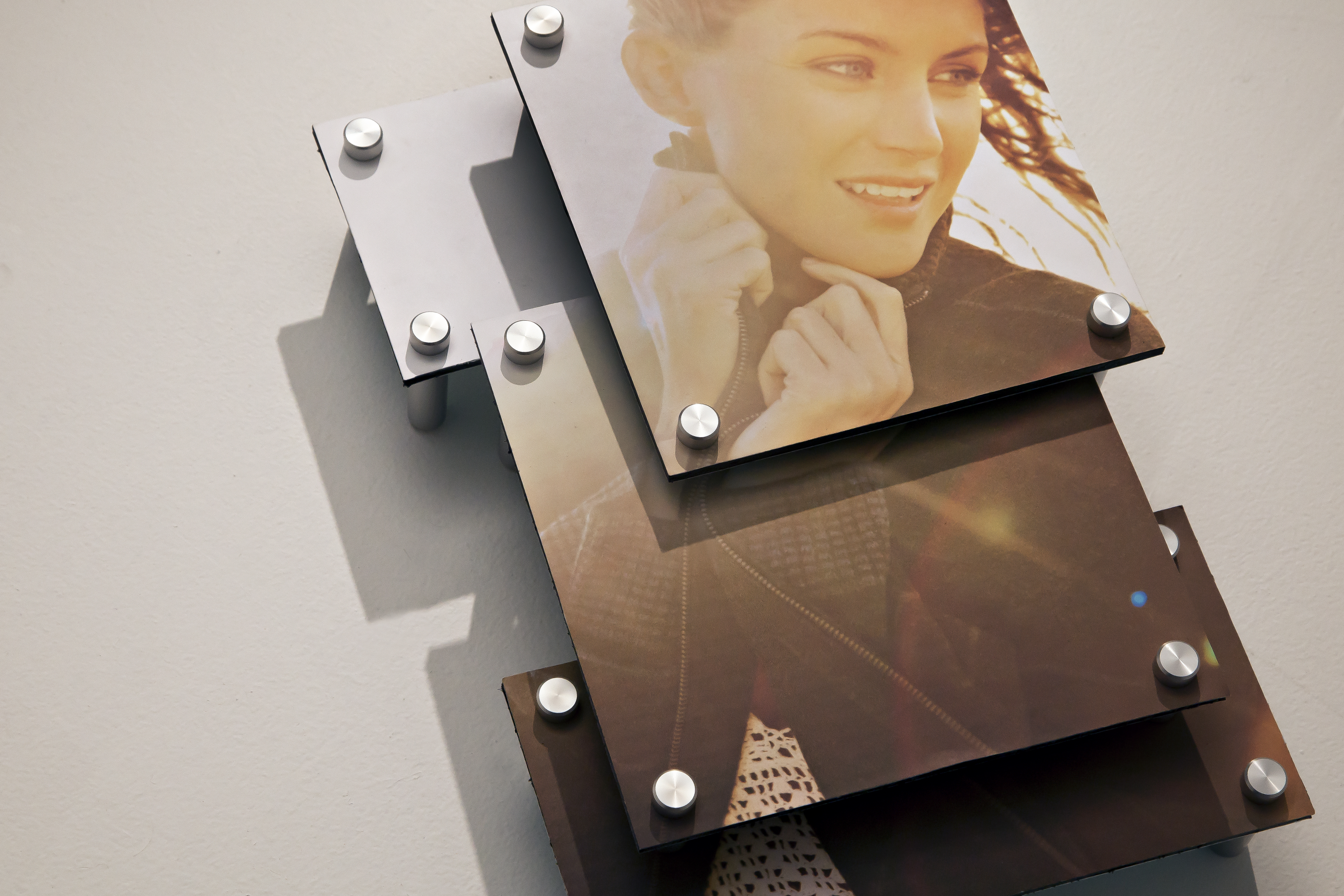 If your design is dynamic and modern, you’ll want something outside the norm. One way to do this is by incorporating a layered system. The one above uses StandOffs of various lengths to stack the image in parts. By carefully selecting your shapes, sizes and positioning, you can direct attention to specific parts of the image.